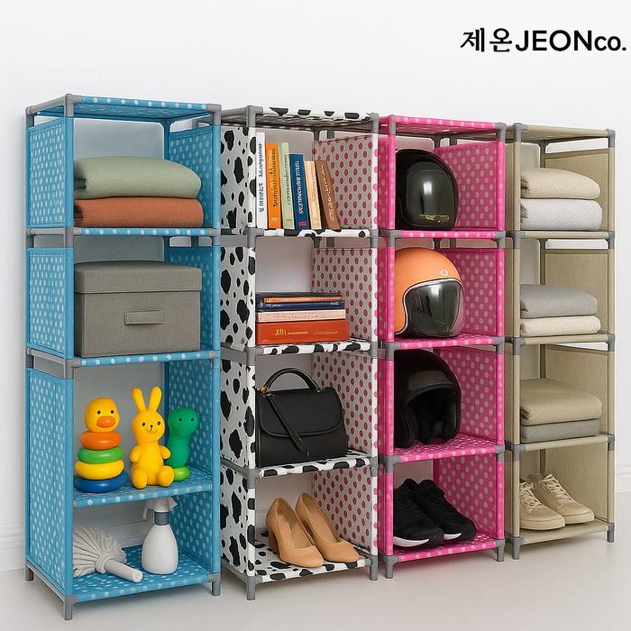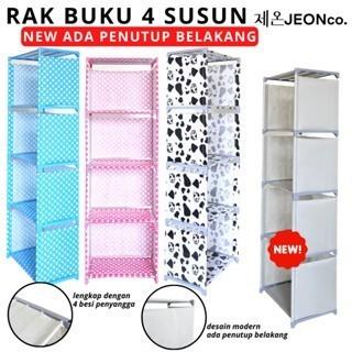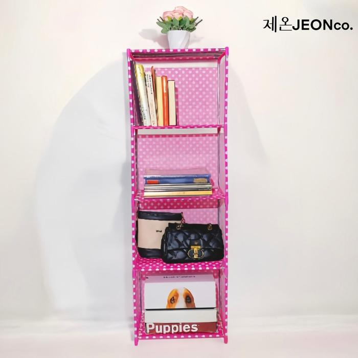 RAK BUKU 5 TINGKAT 4 SUSUN KAIN PORTABLE LEMARI TEMPAT PENYIMPANAN BAJU SEPATU HELM RACK BERMOTIF SERBAGUNA ANAK - RAK BUKU 4SUSUN TUTUP BELAKANG, PINK POLKA