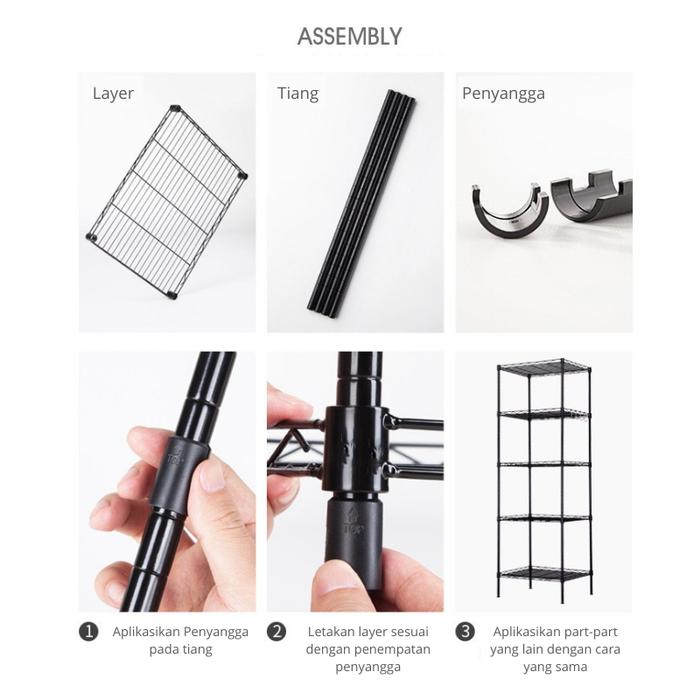 OLLAHOM RAK SERBAGUNA RAK DAPUR TINGKAT RAK KANTOR RAK SUSUN RAK 5 TINGKAT - 3 SUSUN HITAM