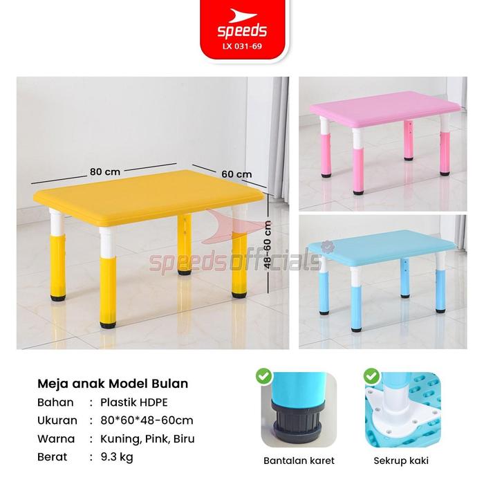 SPEEDS MEJA BELAJAR ANAK RECTANGULAR TEBAL KOKOH HDPE KIDS TABLE MEJA TK PAUD PERSEGI PANJANG COLORFUL KIDS TABLE WARNA WARNI 031-69 - 68 BIRU