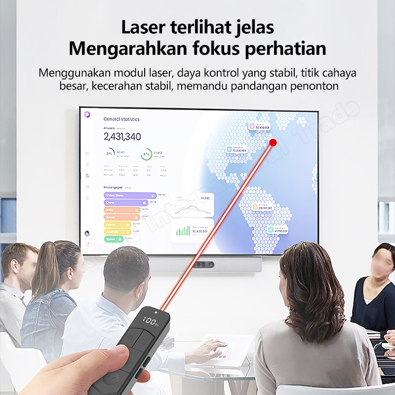 YLV Laser Pointer Presentasi Wireless PPT Presenter USB Rechargeable 100-200M With LED Display