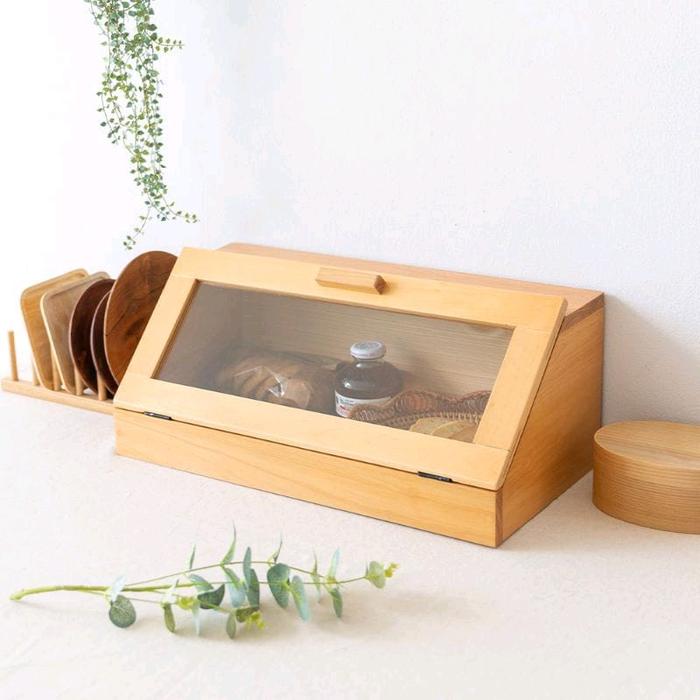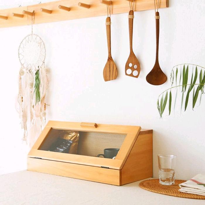 NATURAL BREAD BOX TUTUP MIRING KOTAK ROTI ORGANIZER KAYU DAPAT DISESUAIKAN PENYIMPANAN