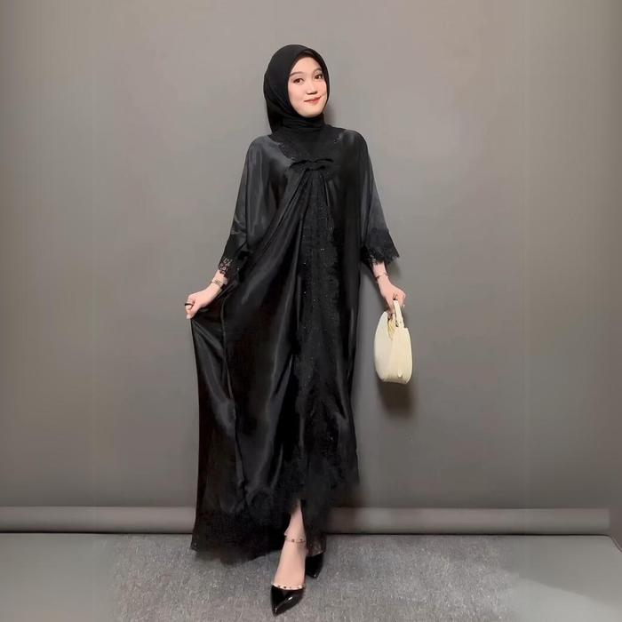 CLOTIVA KAFTAN WANITA CRADENZA SILK MEWAH MUSLIM LEBARAN FORMAL GAMIS NYAMAN PANJANG DRESS - HITAM