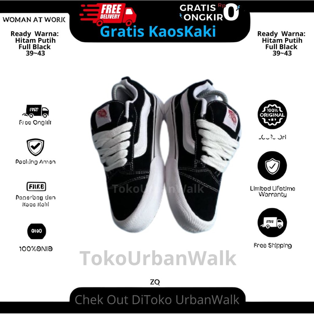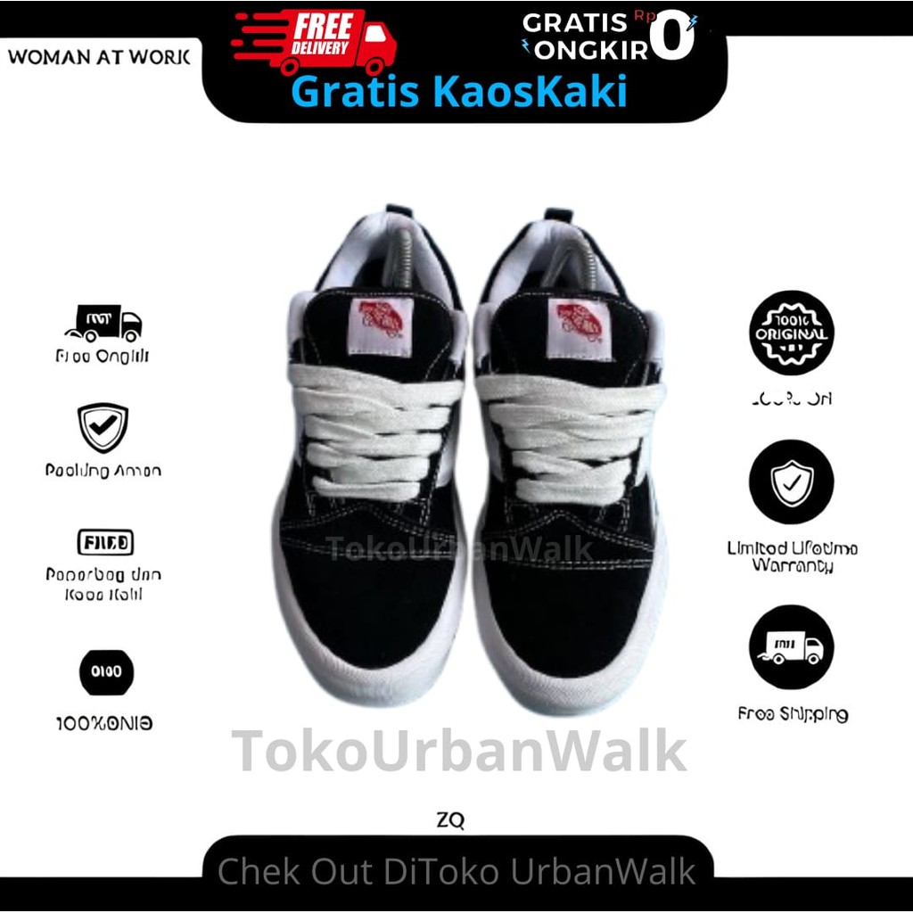 [ Promo ] Sepatu Sneakers Gemuk Knu Skool Black White Quality Size 3943