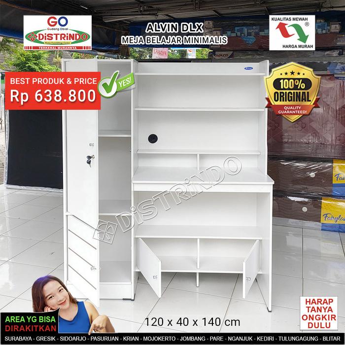 DISTRINDO - MEJA BELAJAR BESAR + 4 LEMARI SERBAGUNA + KUNCI DAN ADA RAK DIBAWAH MEJA - TANPA LAMPU