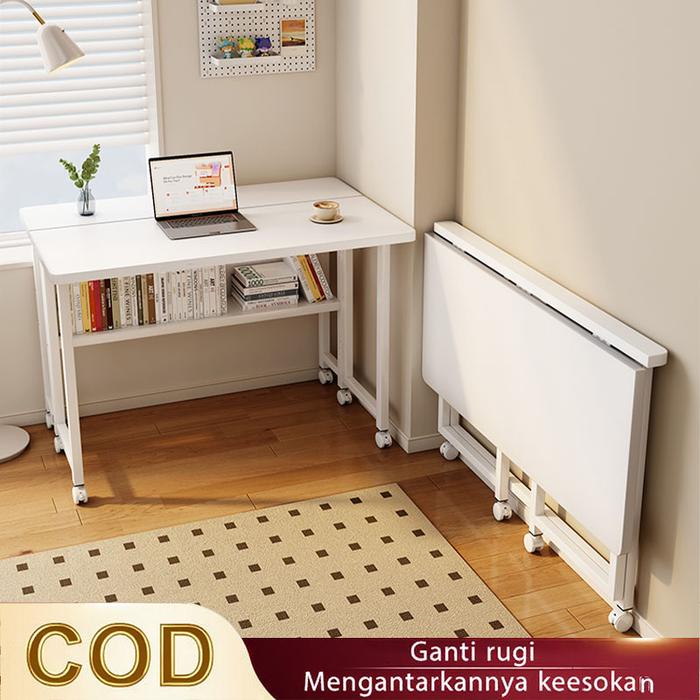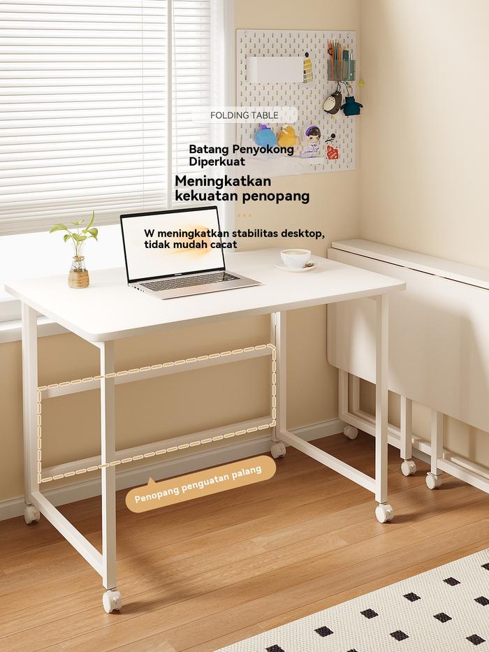 MELIPAT MEJA BERGERAK BISA MEMINDAHKAN MEJA MEJA KOMPUTER RUMAH MEJA TEMPAT TIDUR SEDERHANA MEJA KERJA MEJA KECIL DI SAMPING TEMPAT TIDUR GAYA SERATUS TIDAK MENGAMBIL TEMPAT - PUTIH-100CM