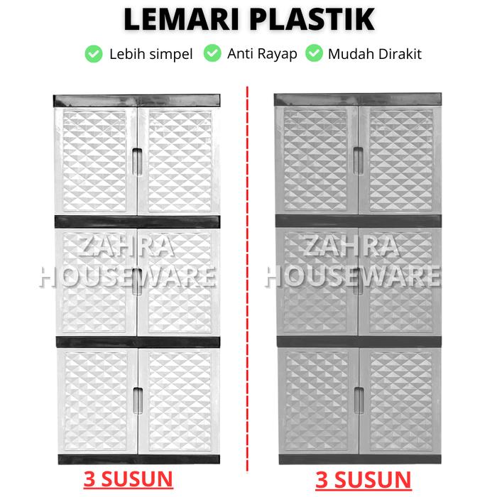 LEMARI PLASTIK 4 SUSUN NEW DIAM0ND SMALL SERIES TABITHA LEMARI BAJU MINIMALIS WARNA - 4 SSN SM (TEBAL) NO KUNCI, RANDOM (ABU/PUTIH)