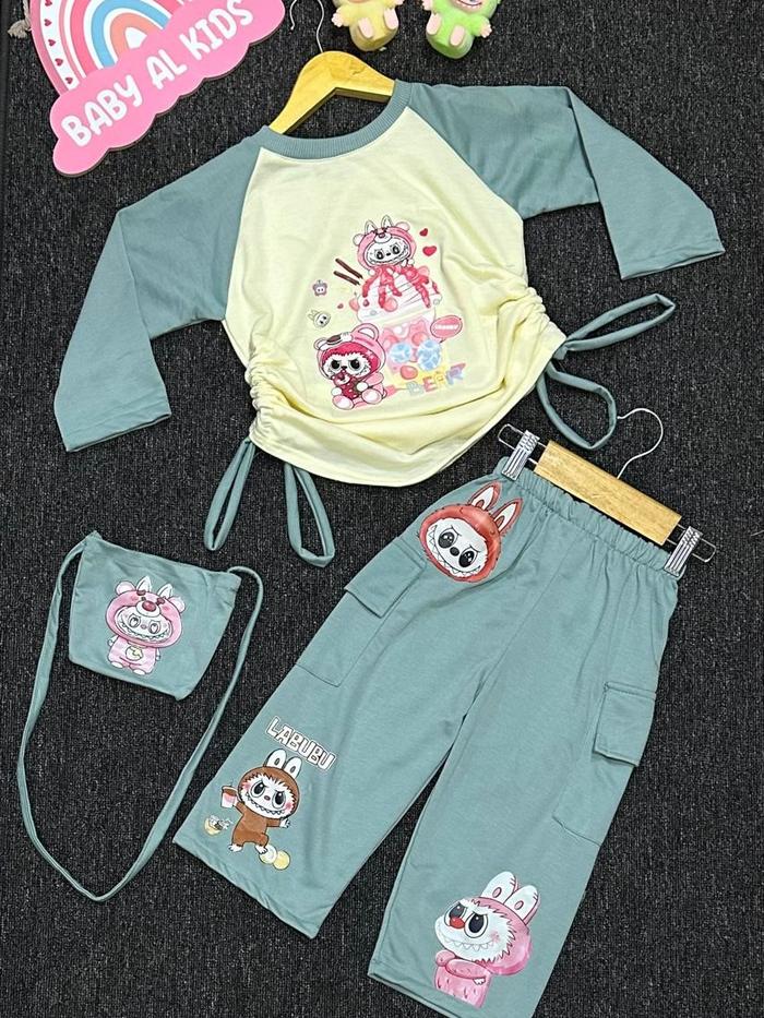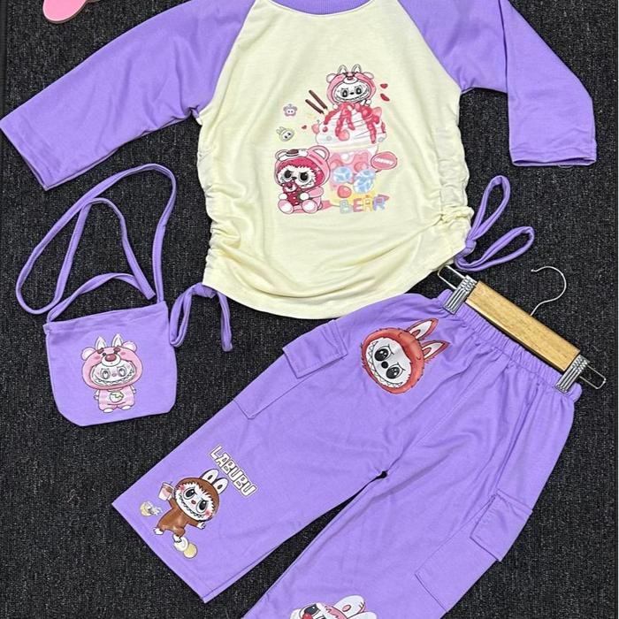 SETELAN ANAK PEREMPUAN VIRAL BAJU MODEL SERUT FREE TAS 2 - 10 TAHUN CELANA CARGO PARSEL - FREE TAS DUSTY, SIZE M 2-3 TAHUN