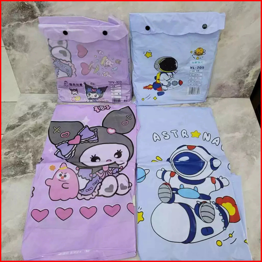 4-13 Thn Jas Hujan Anak Lucu Kuromi Astronot Dino Princess Sofia Jas Hujan Ransel Anak Hoodie Anak Laki Laki Perempuan P