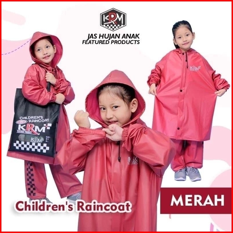 Krm Mantel Hujan Anak Tebal Kuat Bahan Pvc Karet Anti Rembes Jas Hujan Krem