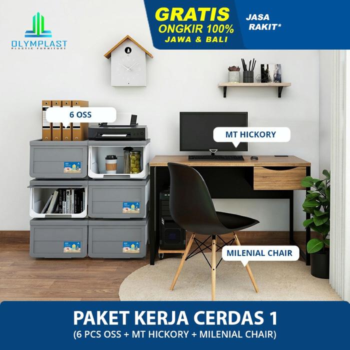 OLYMPLAST KERJA CERDAS 1 – MEJA BELAJAR + KURSI + KOTAK PENYIMPANAN