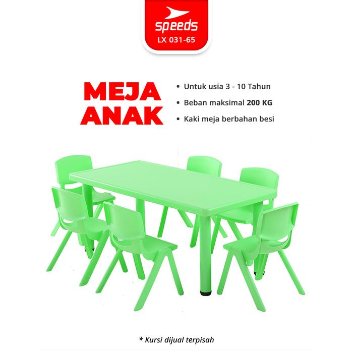 SPEEDS MEJA BELAJAR ANAK RECTANGULAR KIN KIDS TABLE MEJA PERSEGI PANJANG COLORFUL KIDS TABLE TK PAUD ERGONOMIS FUNGSIONAL WARNA WARNI 031-65 - 65 HIJAU