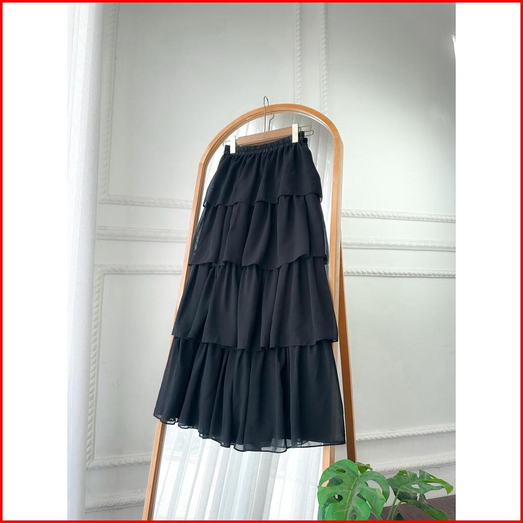 Heidi Rok Ceruty Susun Empat 4 Maxi Skirt Rufla Ruffle Rempel Full Midi Termurah Eksklusif Promosi Diskon Btcsolo Ceruti