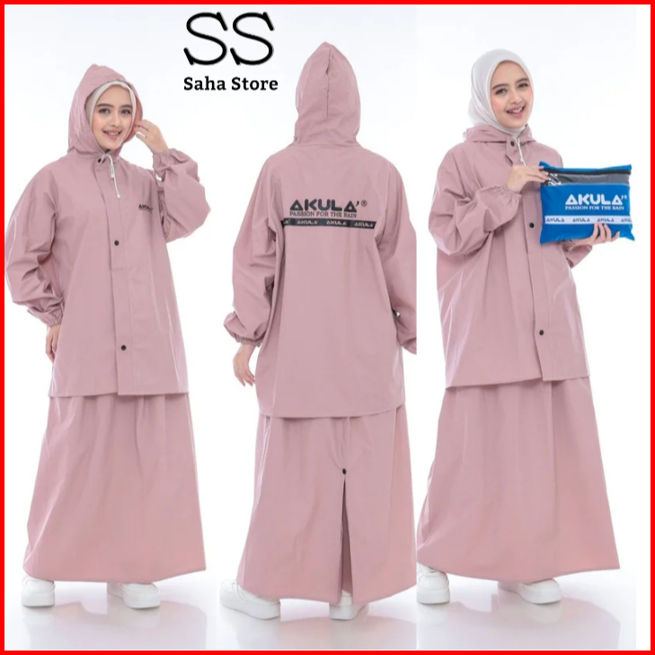 Akula Jas Hujan Raincoat Wanita Anti Rembes Rok Dusty Pink