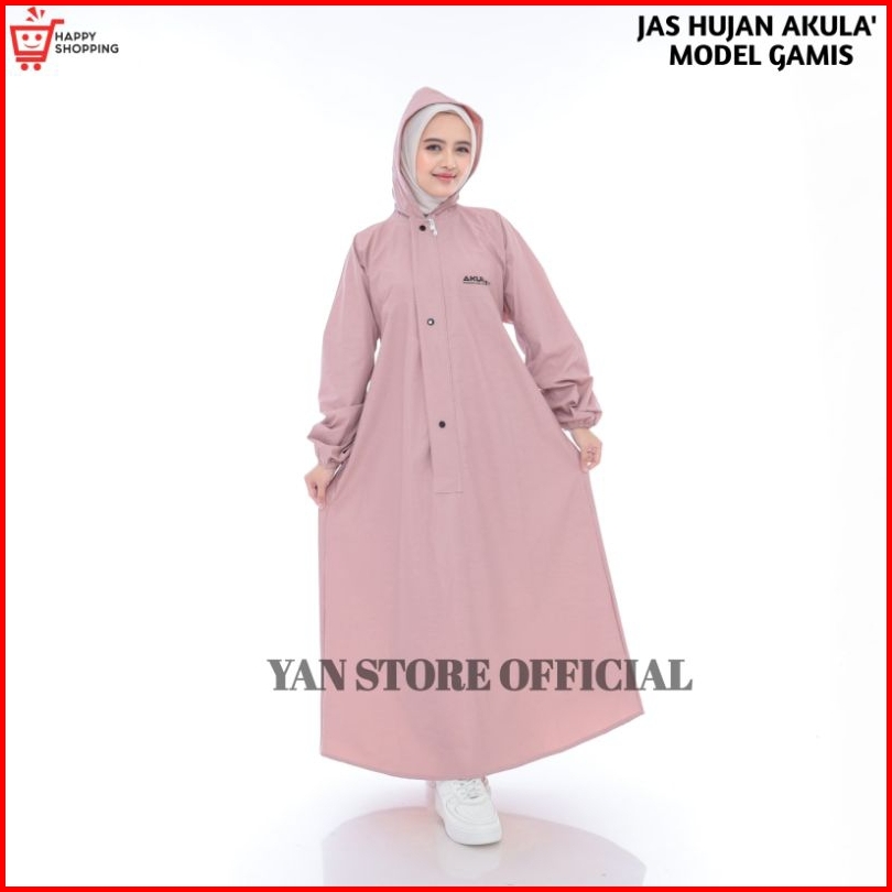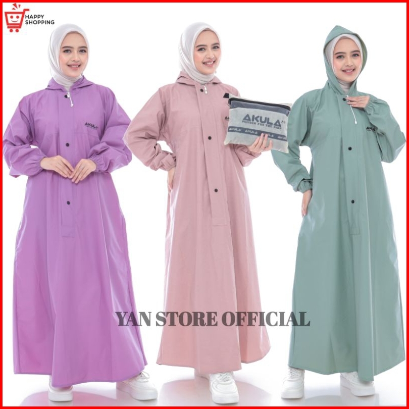 Akula Jas Hujan Wanita Muslimah Setelan Gamis Kain Pvc 0 25 Tebal Kuat Elastis Anti Air