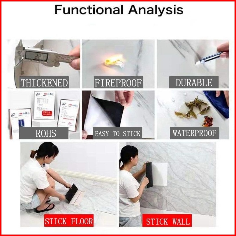50pcs Wallpaper Dinding Vinyl Marble 30 X 30 Cm Lantai Vinyl Keramik Marbel Granit Stiker Lemari Cabinet Marbel