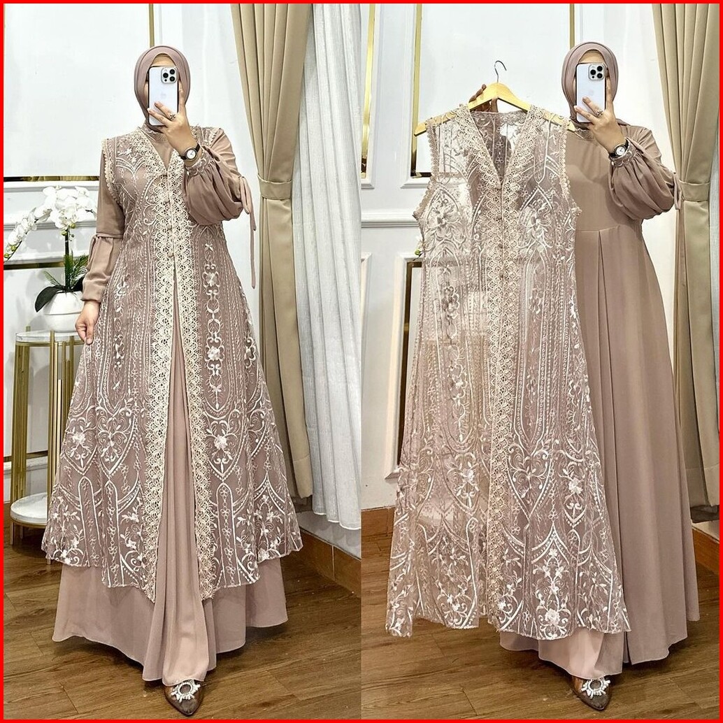 Naura Dress Muslim Wanita Ceruty Mix Brukat Fit To Xl Besar Ootd Lebaran L Pesta Kondangan Premium
