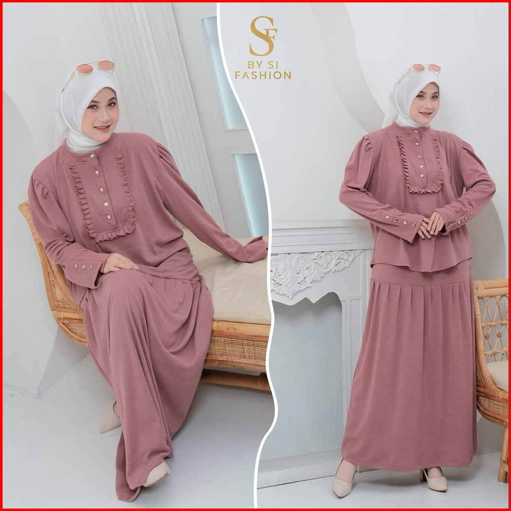 Si Airy One Set Knitt Stelan Rok Wanita Busui Kekinian Fashion Terviral