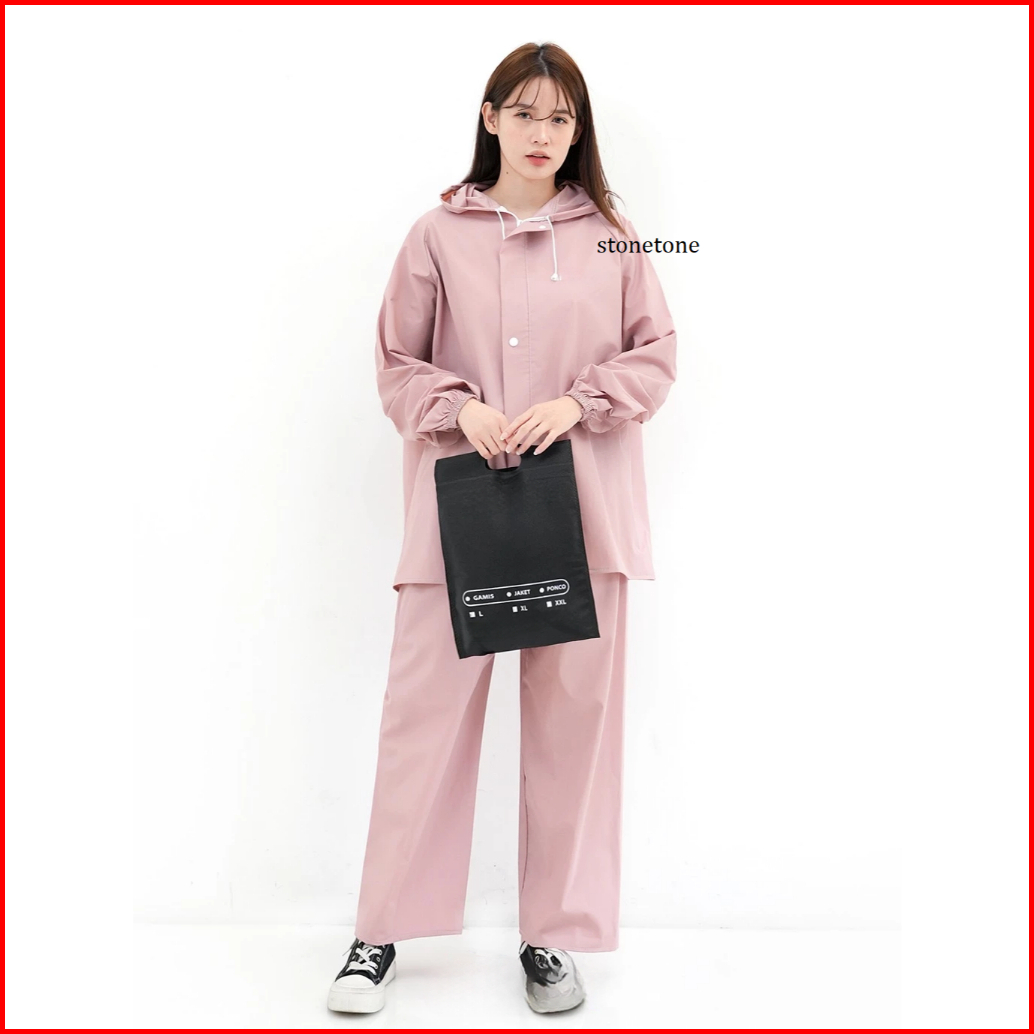 Aimon Jas Hujan Pria Wanita Warna Pastel Setelan Jaket Celana