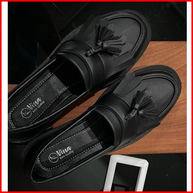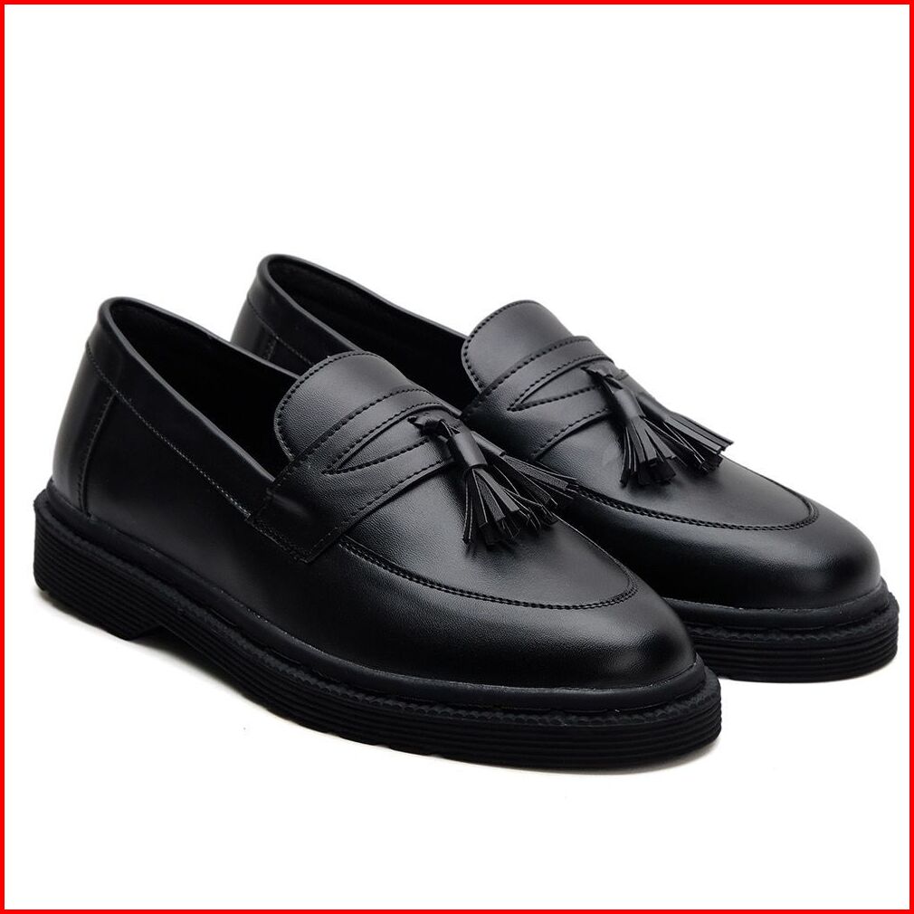 Sepatu Pria Slip On Docmart Loafers Pantofel Formal Black Matte
