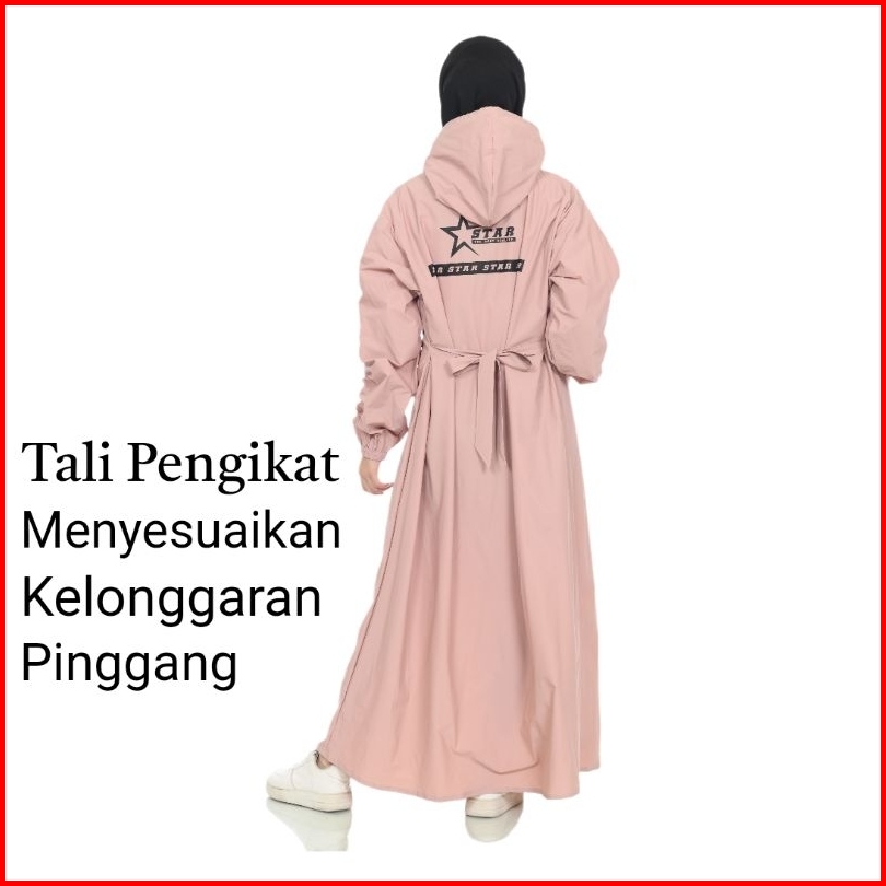 Jas Hujan Gamis Wanita Muslimah Anti Rembes Resleting Waterproff
