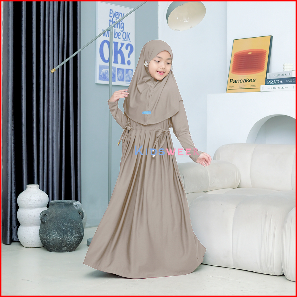 Gamis Anak Perempuan Serut Ss Satu Set Hijab Jersey Premium Usia 0-12 Tahun