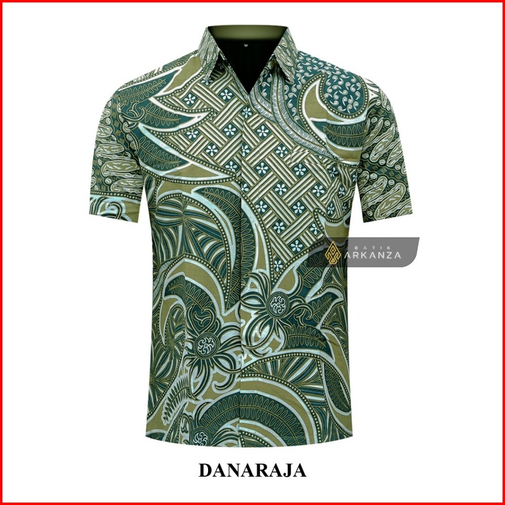 Batik Arkanza Motif Danaraja Hijau Baju Batik Pria Full Lapis Furing