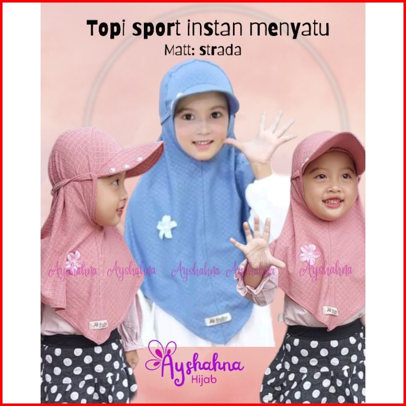 Kerudung Anak Sport Jilbab Topi Premium Strada Bunga Hijab Anak Perempuan