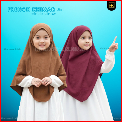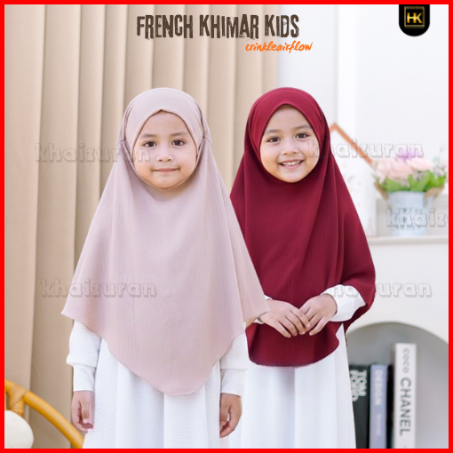 French Khimar Anak Crinkle Airflow Usia 4-8tahun