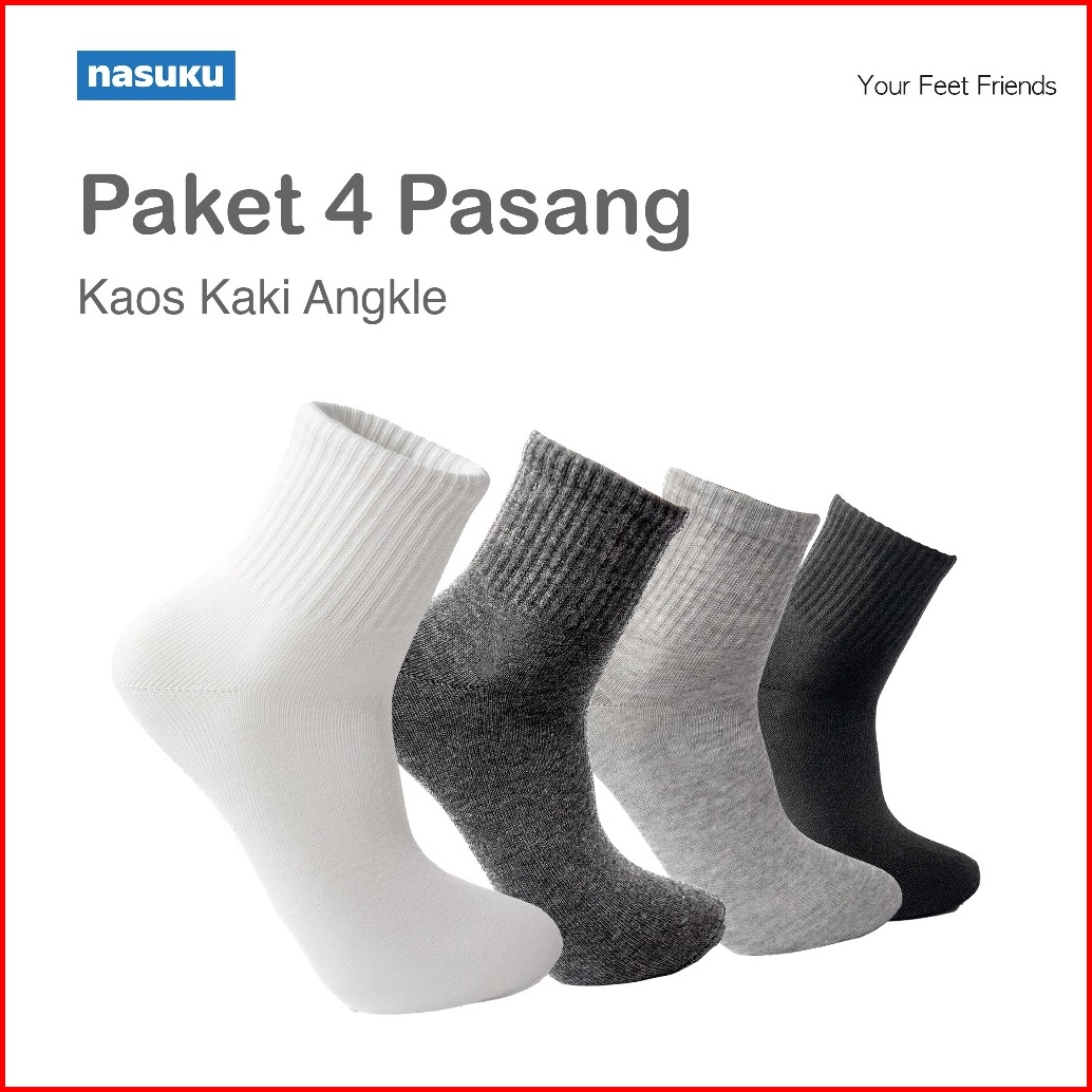 Nasuku - Paket Bundling 4 Pasang Kaos Kaki Pendek - Kaos Kaki Pendek Angkle Pria Wanita