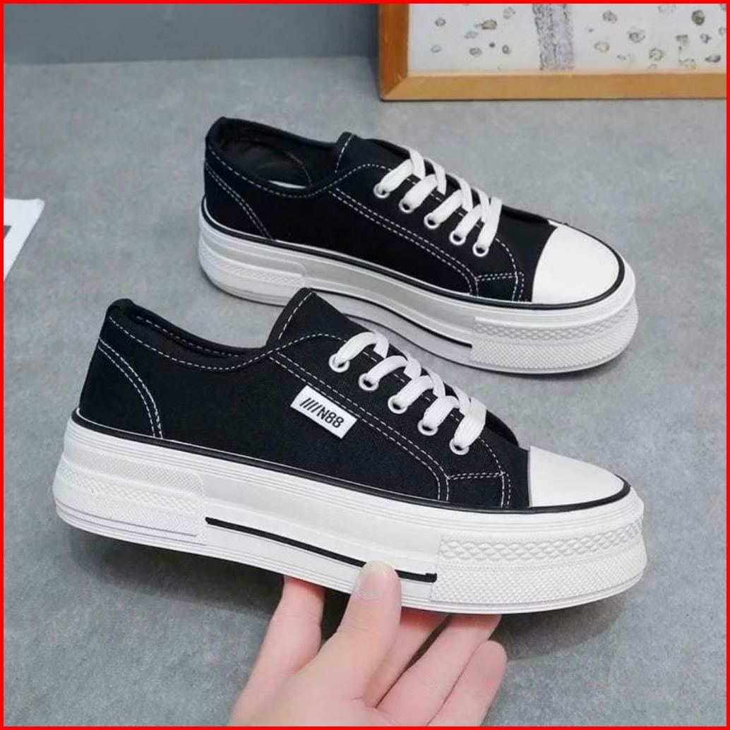 Sepatu Sneakers Kasual Canvas Wanita Korea N88 New