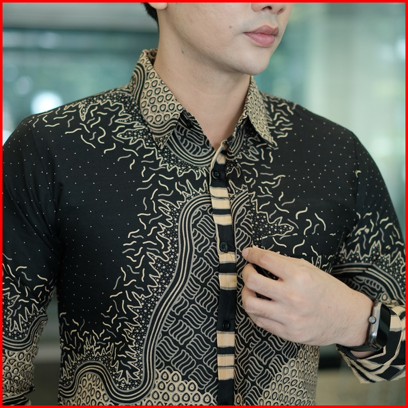 Bara Hitam Kemeja Batik Pria Lengan Panjang Full Furing Slimfit Katun Halus Lembut