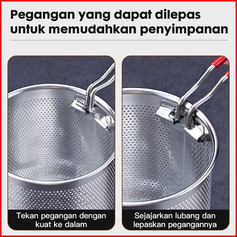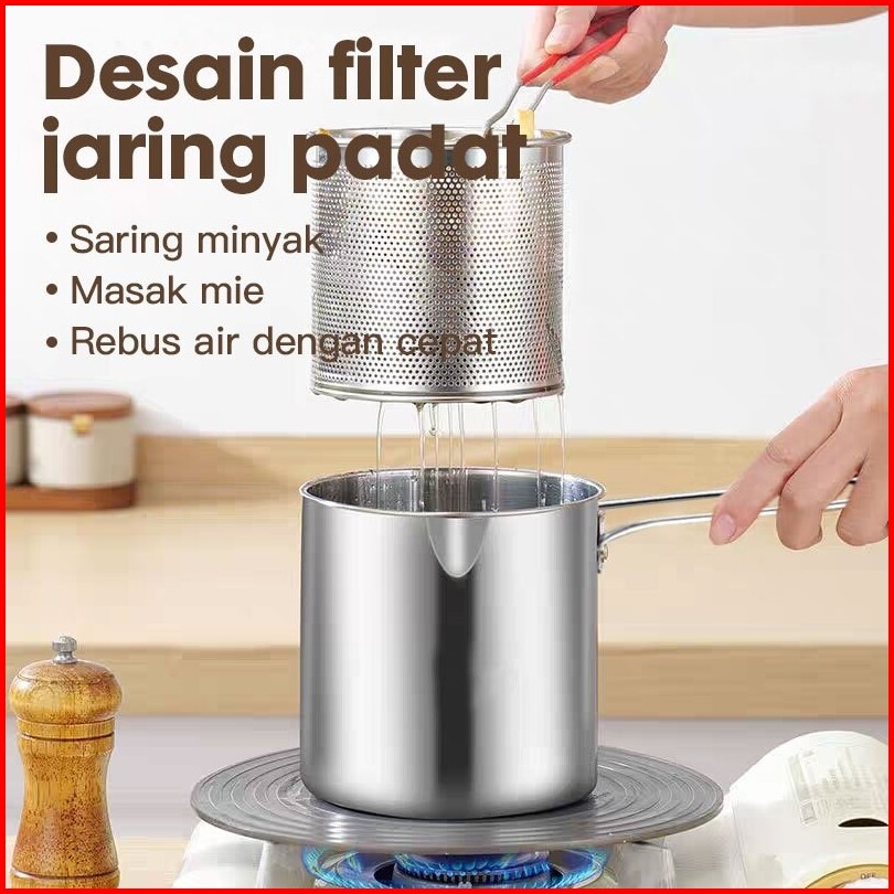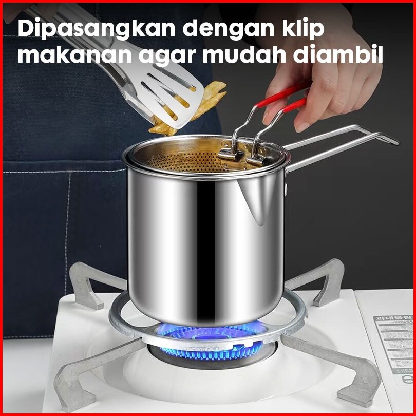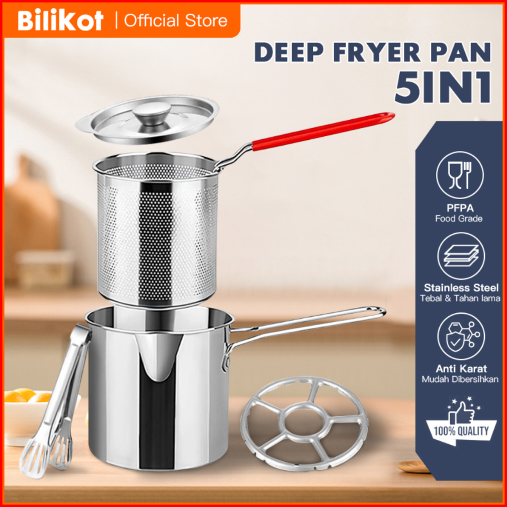 Bilikot Deep Fryer 13cm 5in1 Panci Penggorengan Stainless Steel Multi Set Saringan Penggorengan Klip Makanan Tutup Kompo