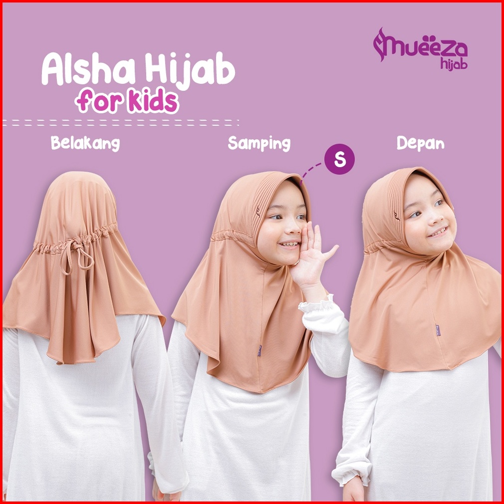 Jilbab Anak Sekolah Sd Premium Umur 5 6 7 8 9 10 Alsha M Tali Serut Belakang Kerudung Mueeza Hijab Bahan Spandex Jersey