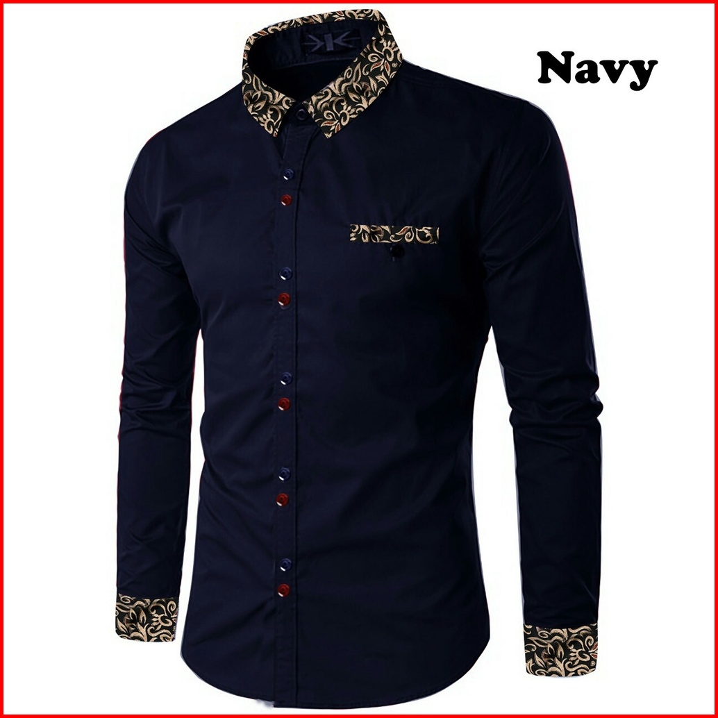 Kemeja Pria Riko Lengan Panjang Terlaris Motif Kombinasi Batik