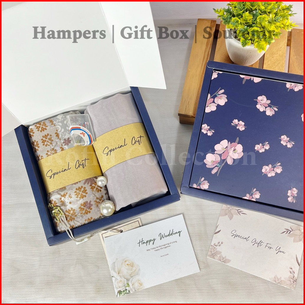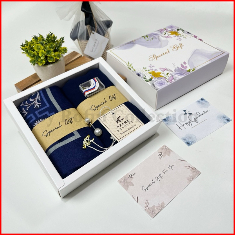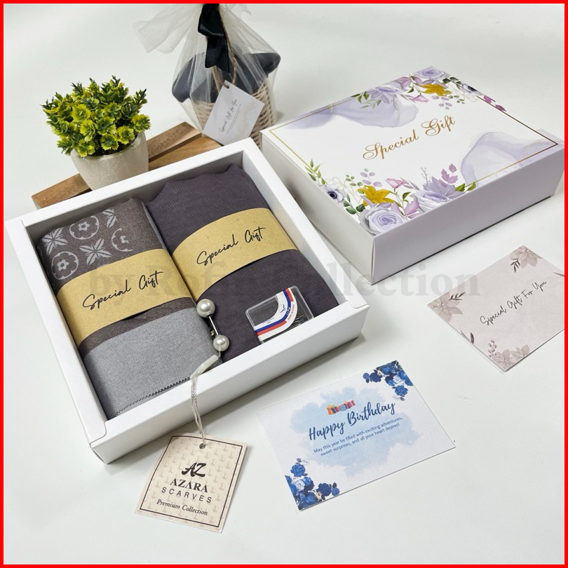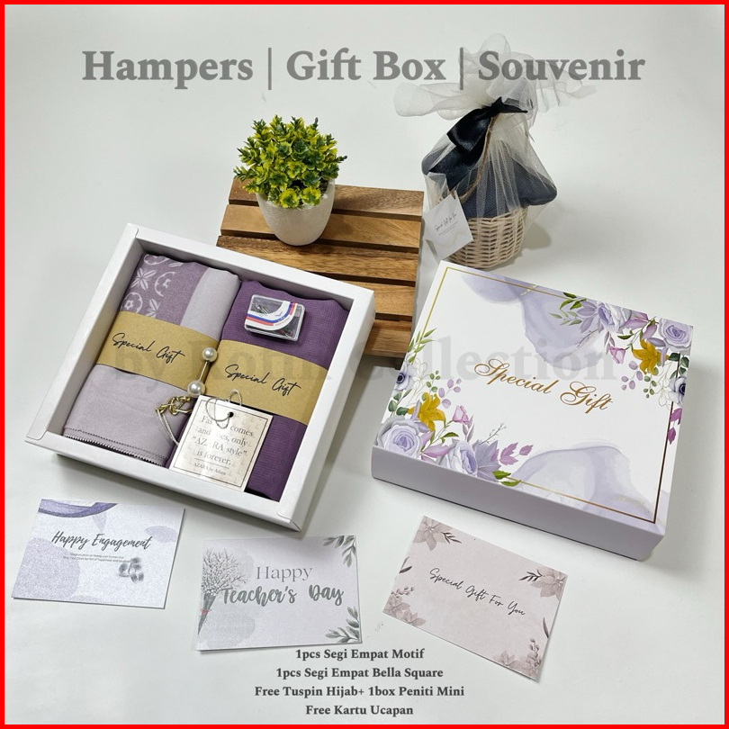 Hampers Gift Box Souvenir Hijab Isi 2pcs Segi Empat Motif X Segi Empat Bella Square
