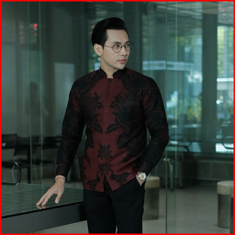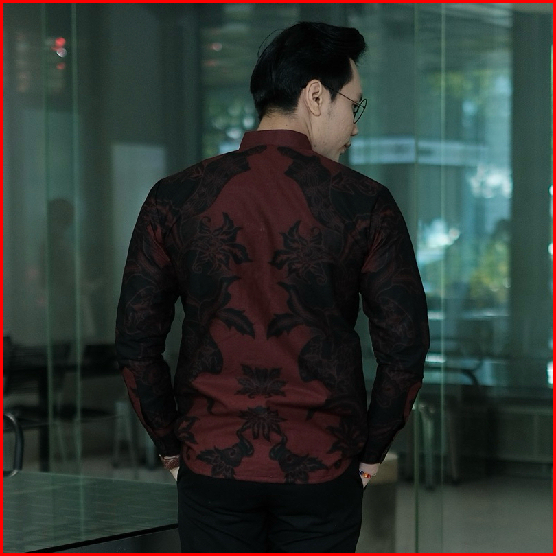 Yudhistira Koko Batik Pria Lengan Panjang Kerah Shanghai Warna Hitam Maron Full Furing Premium