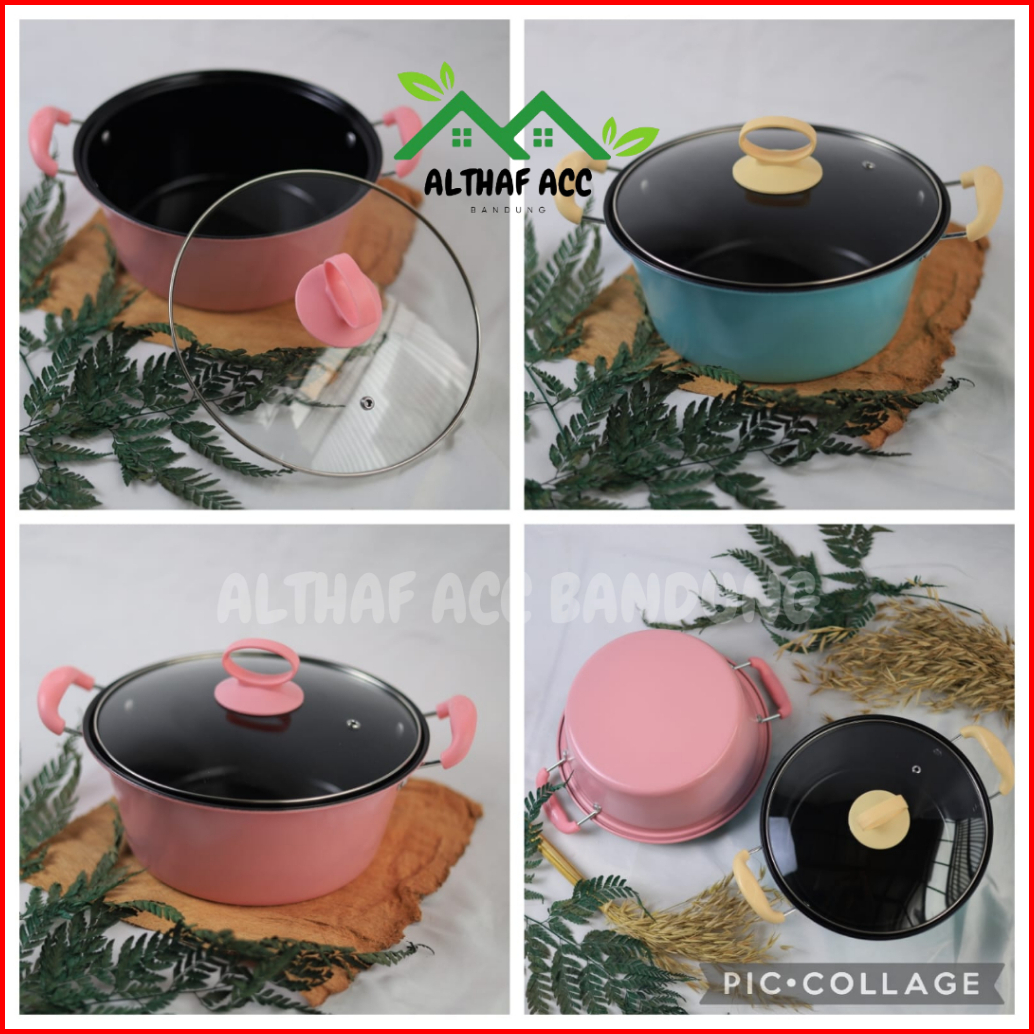 Panci Kuah Warna Tutup Kaca Ukuran 20cm Anti Lengket