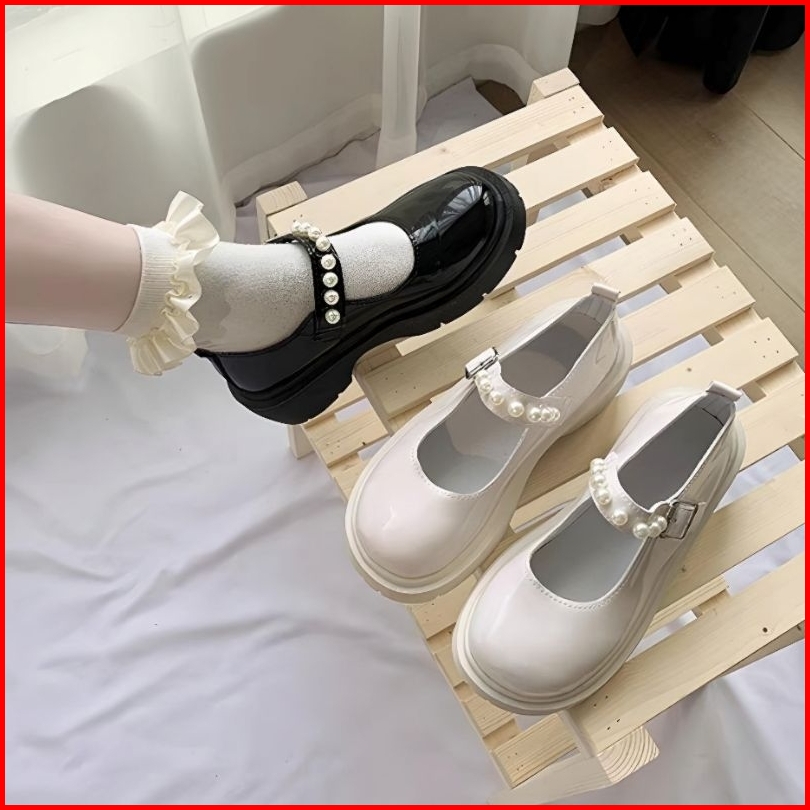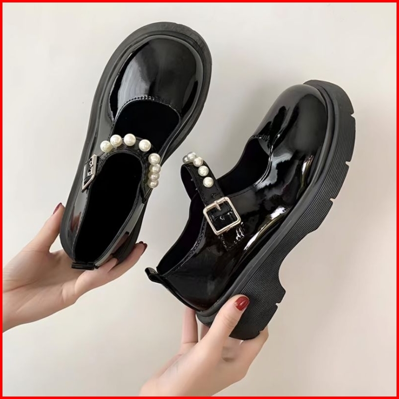 Sepatu Kerja Wanita Kasual Mutiara Import Sepatu Loafers Perempuan Casual Pearl Look Women Boots Sk-028
