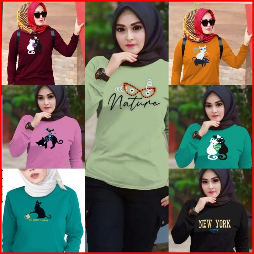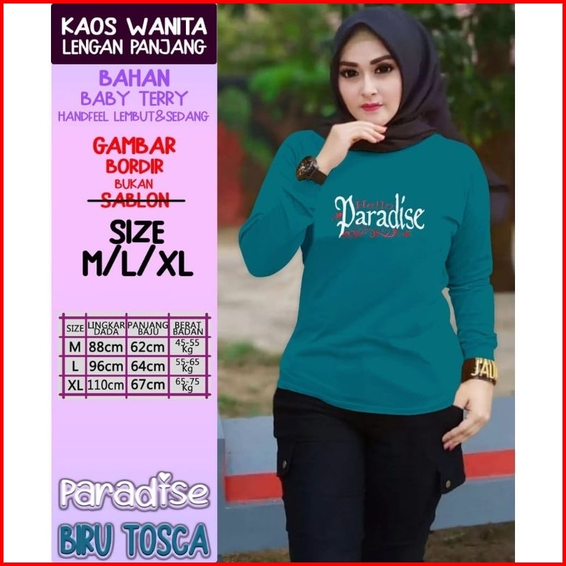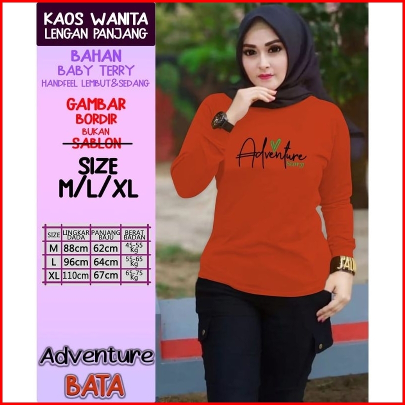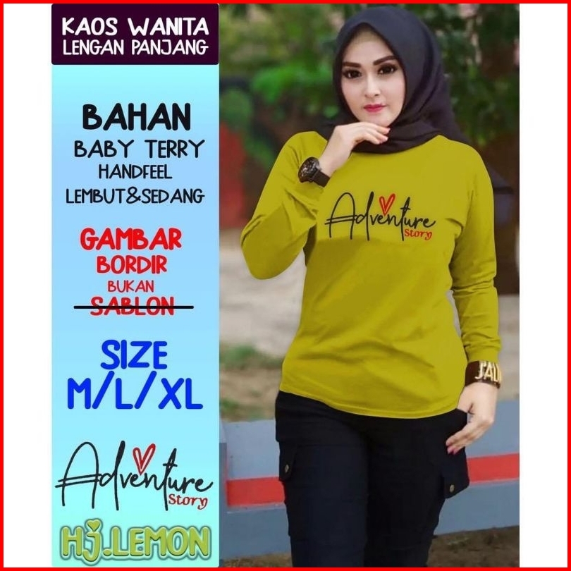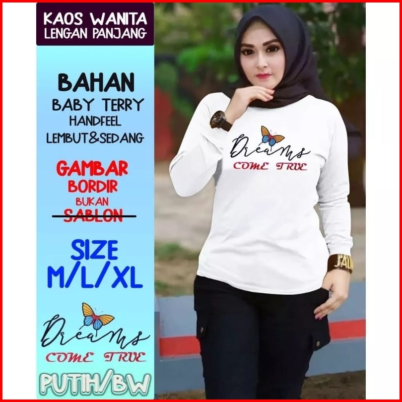 Kaos Wanita Lengan Panjang Bahan Babyterry Premium Bordir