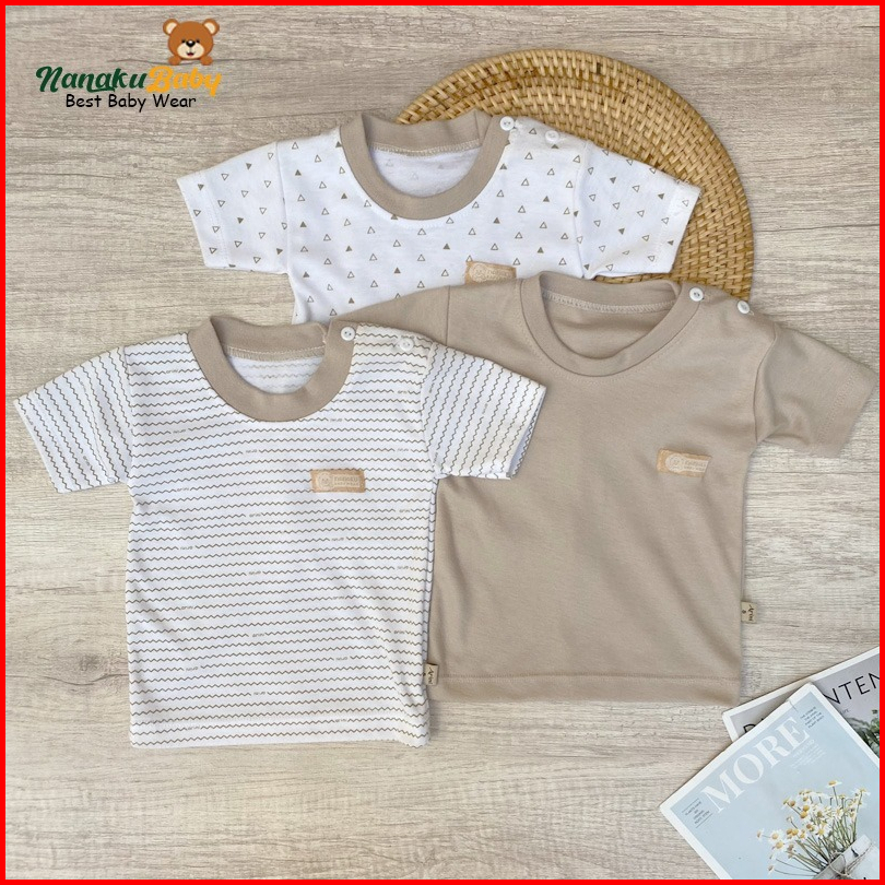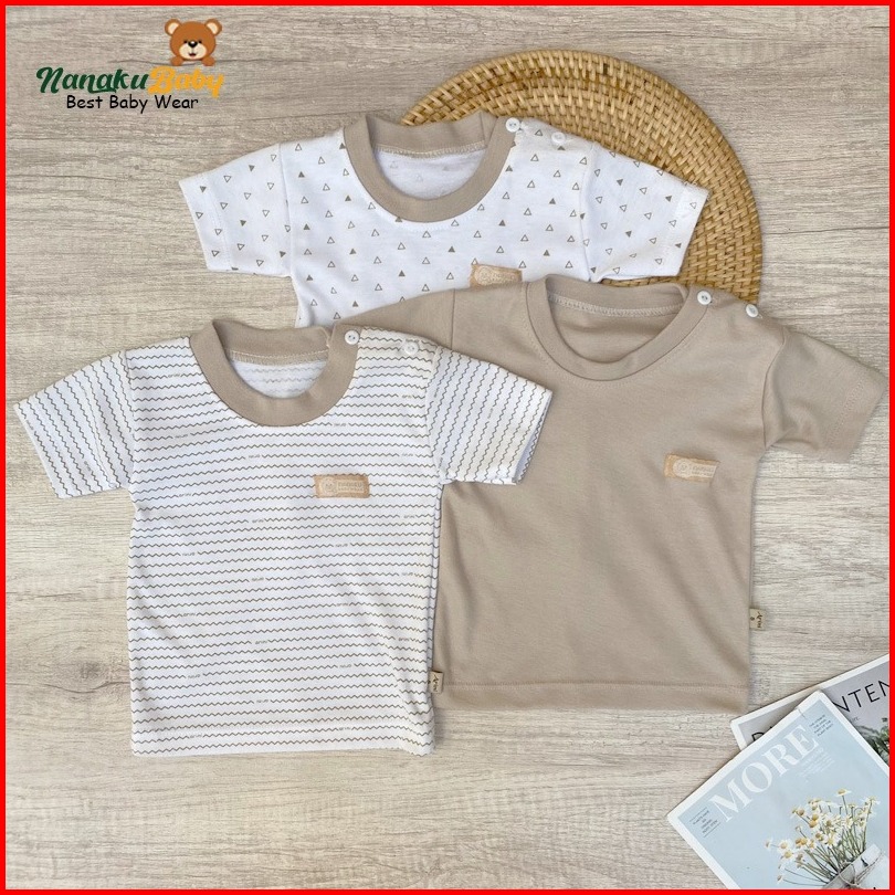 Nanaku Baby - Isi 3 Pcs Baju Bayi Kaos Oblong Bayi Kualitas Premium Ukuran S M L Xl Usia 0-18 Bulan Series Cream