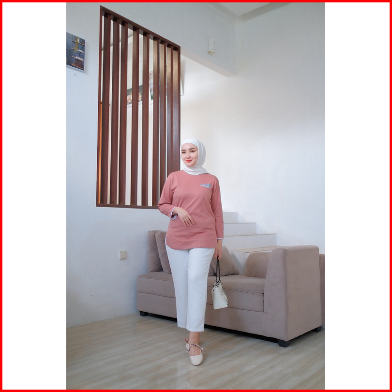 Bbc Atasan Kaos Nameera Motif Bulu Lengan 7 8 Terbaru