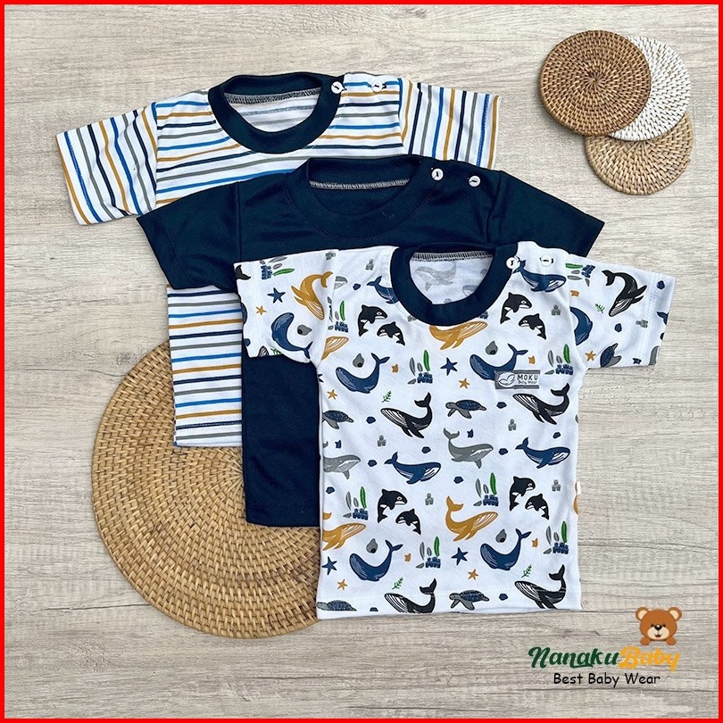 Nanaku Baby - Ukuran S M L Xl Baju Bayi Newborn Isi 3 Pcs Model Lengan Pendek Kancing Pundak Bahan Adem Sni Series Paus