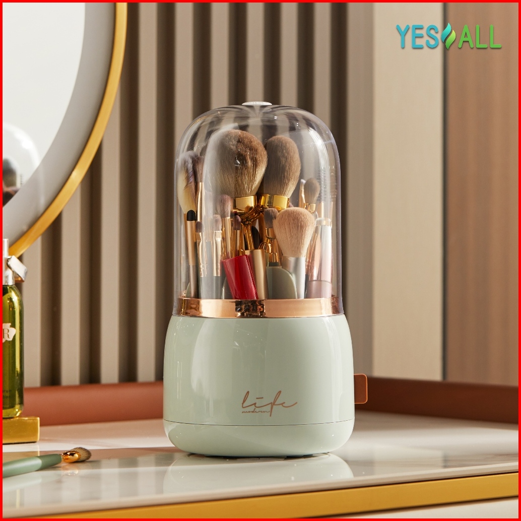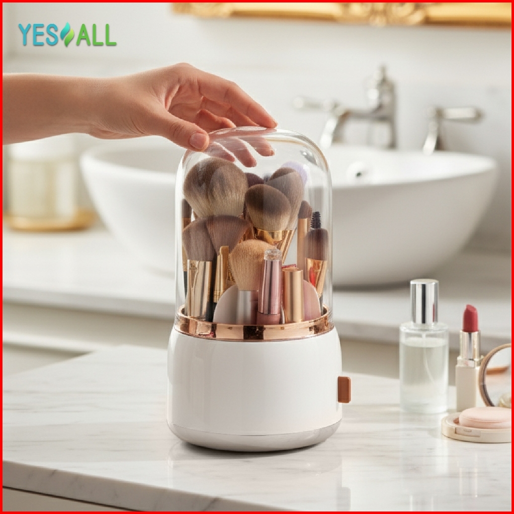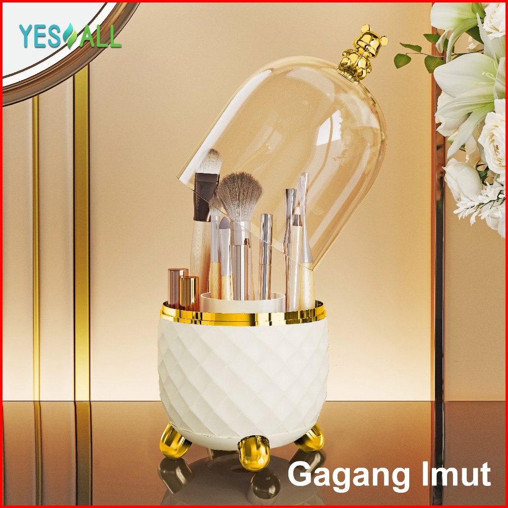 Yesall Kotak Makeup Organizer Beruang Imut - Rak Kosmetik Tempat Kuas Putar 360 Tempat Brush Sendok Alat Tulis Tutup Tra