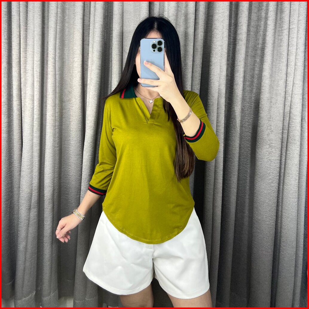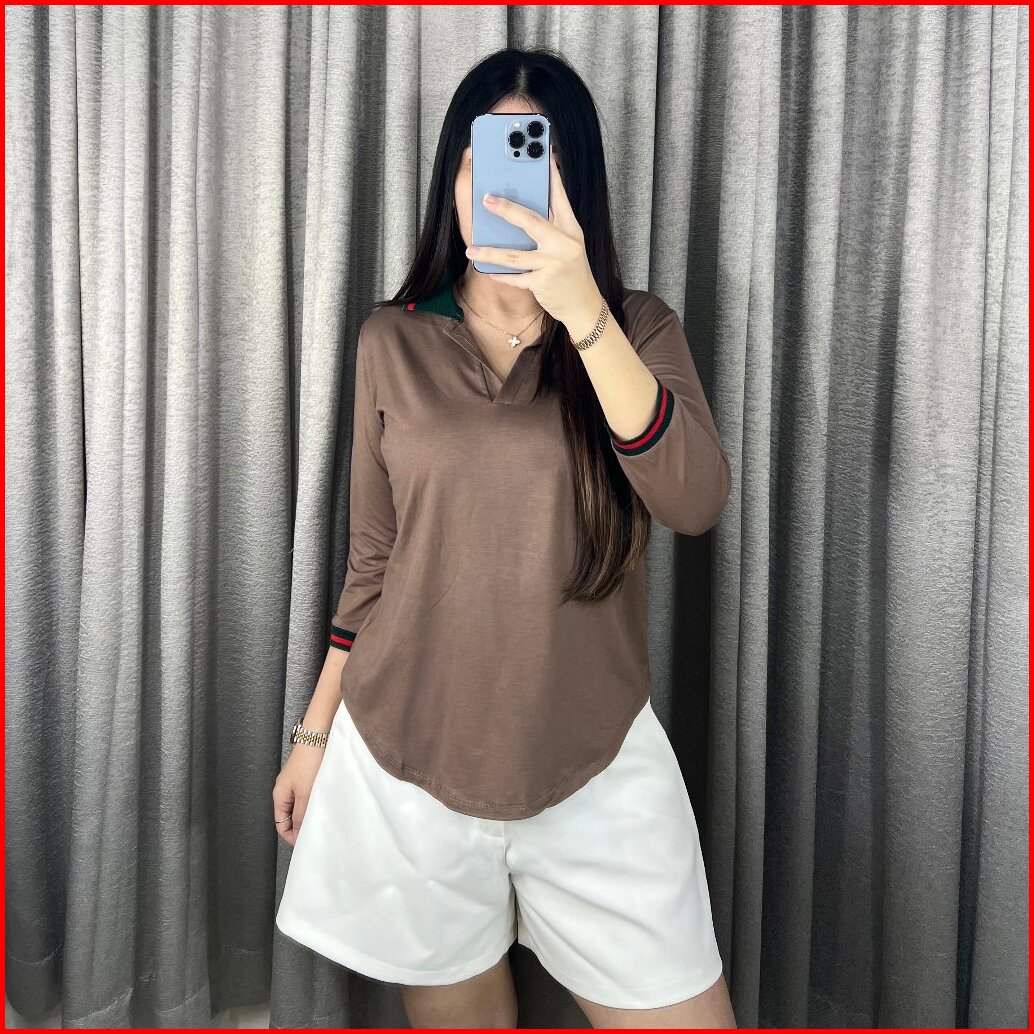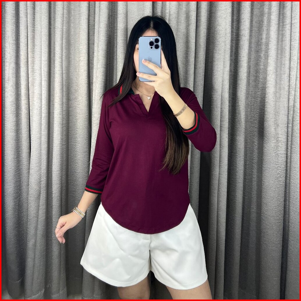 Azelie Atasan Kerah V Lengan Panjang Bawah Oval