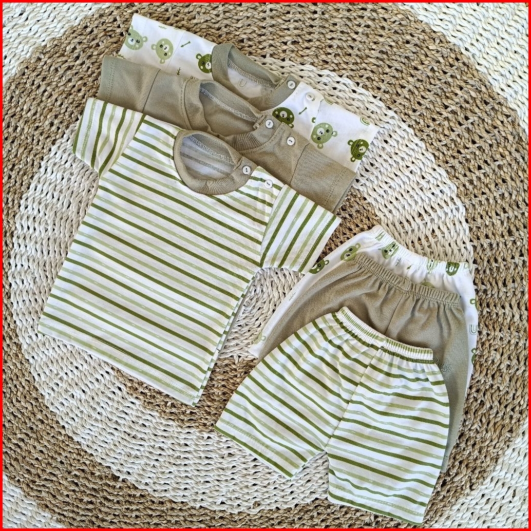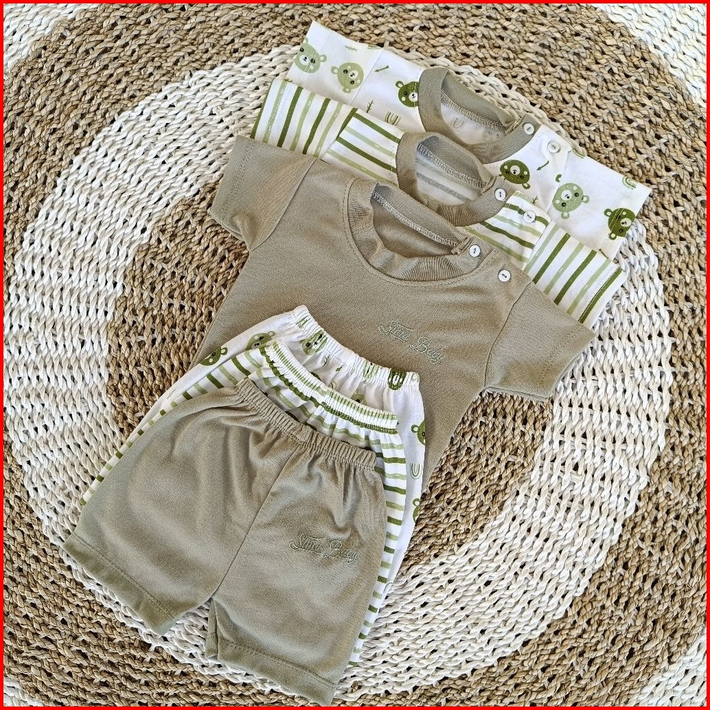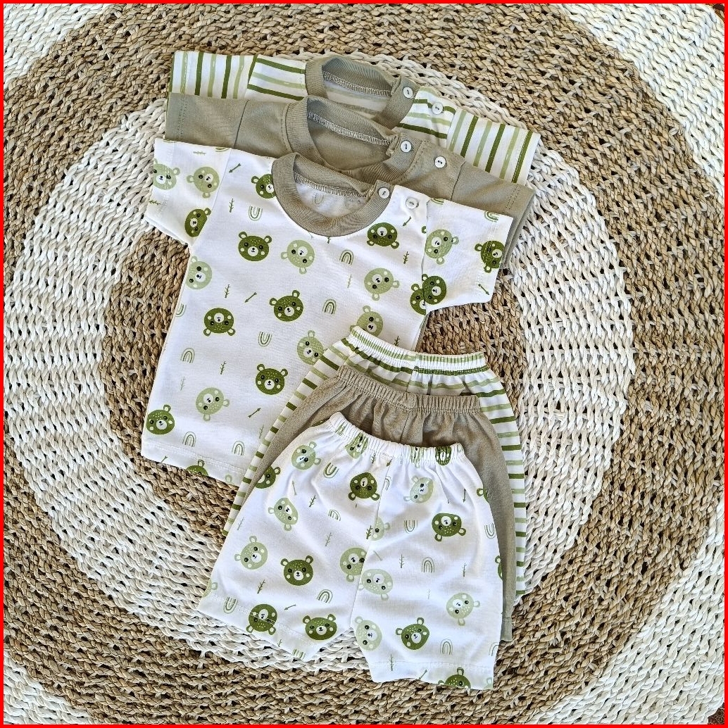 Promo Isi 3 Stelan Baju Bayi Lengan Pendek Kancing Pundak Dan Celana Pendek Bayi Piyama Bayi Baru Lahir 0-18 Bulan S M L