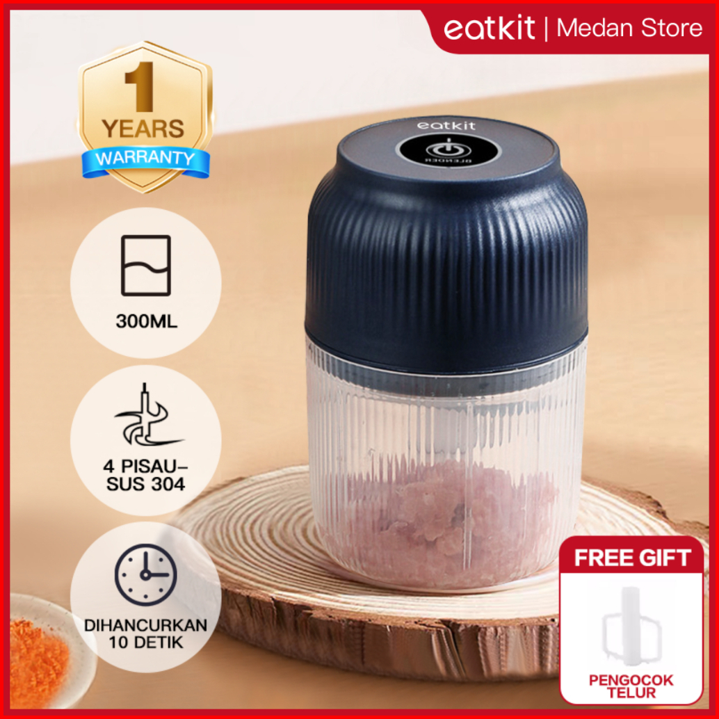 Medan Ready Stock Eatkit Mini Chopper Portable 300ml 4 Pisau Food Processor Elektrik Untuk Bisa Daging Bumbu