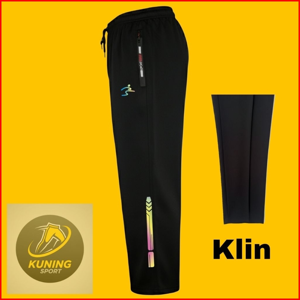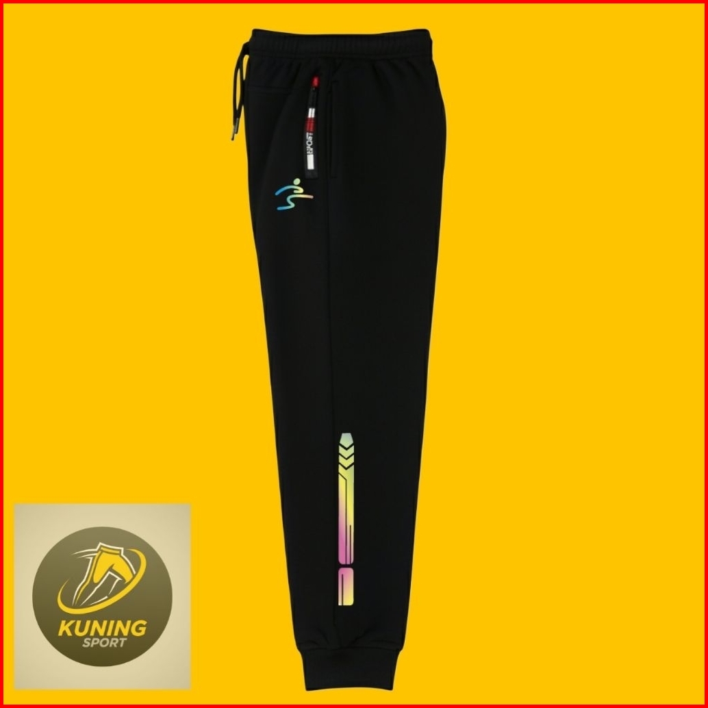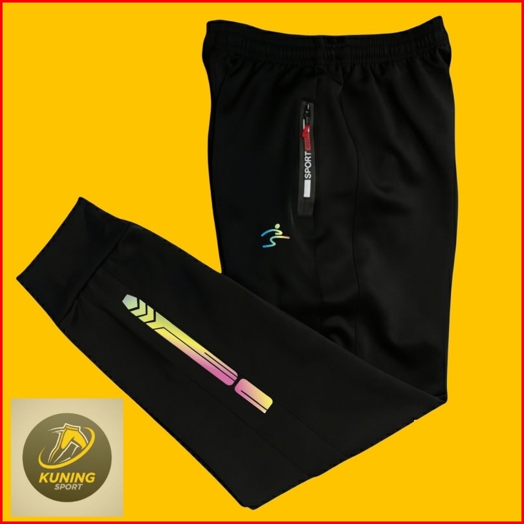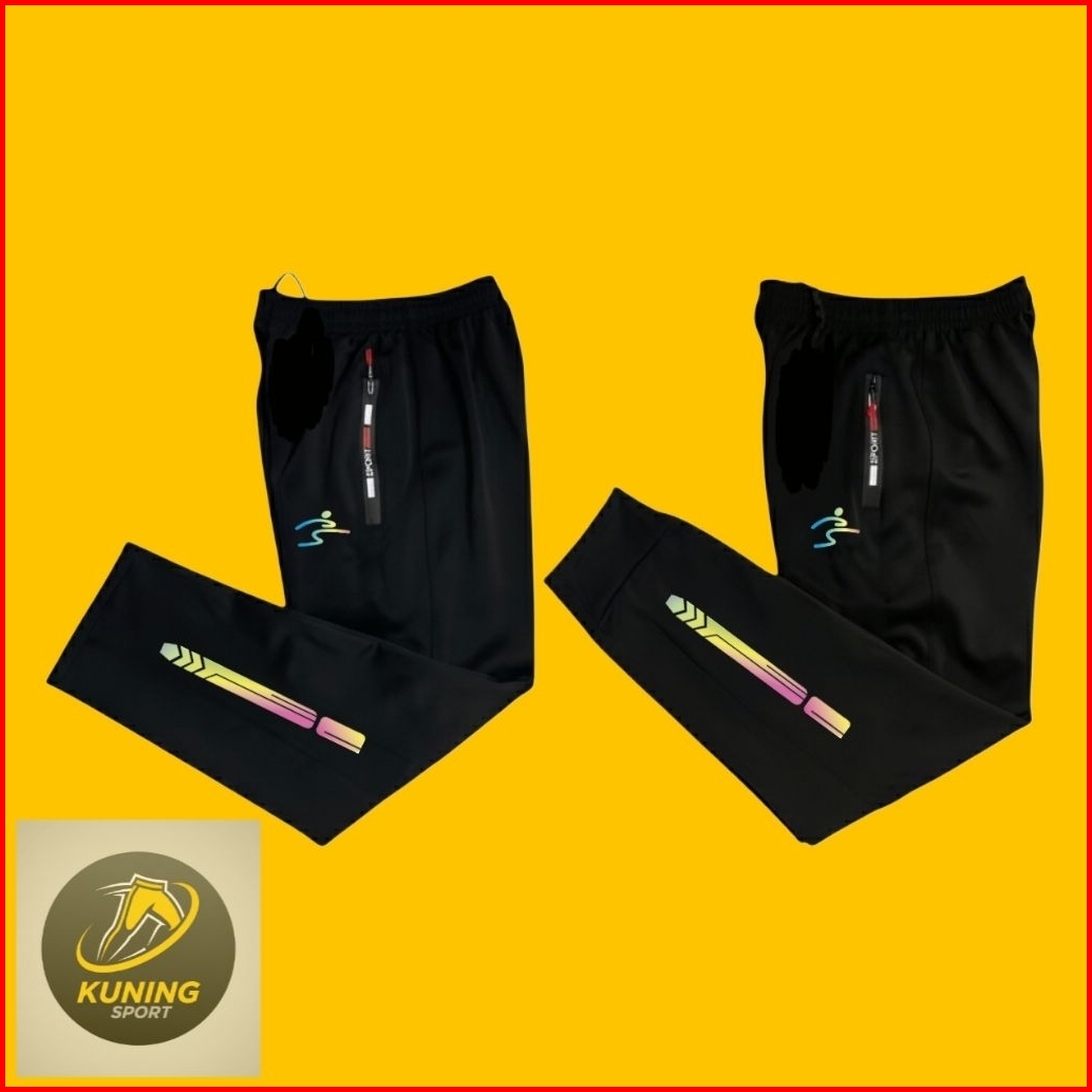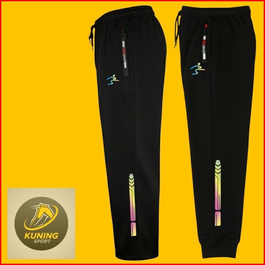Celana Olahraga Running Pria Wanita - Celana Training Panjang Bahan Scuba Elastis Motif Kuning