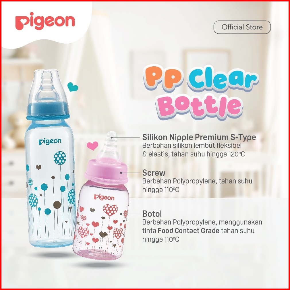 Pigeon Botol Susu Pp Clear Rp 120ml W S-type Nipple Dot Pilih Variasi Botol Susu Bayi Slim Neck Anti Kolik Nipple Dot Si