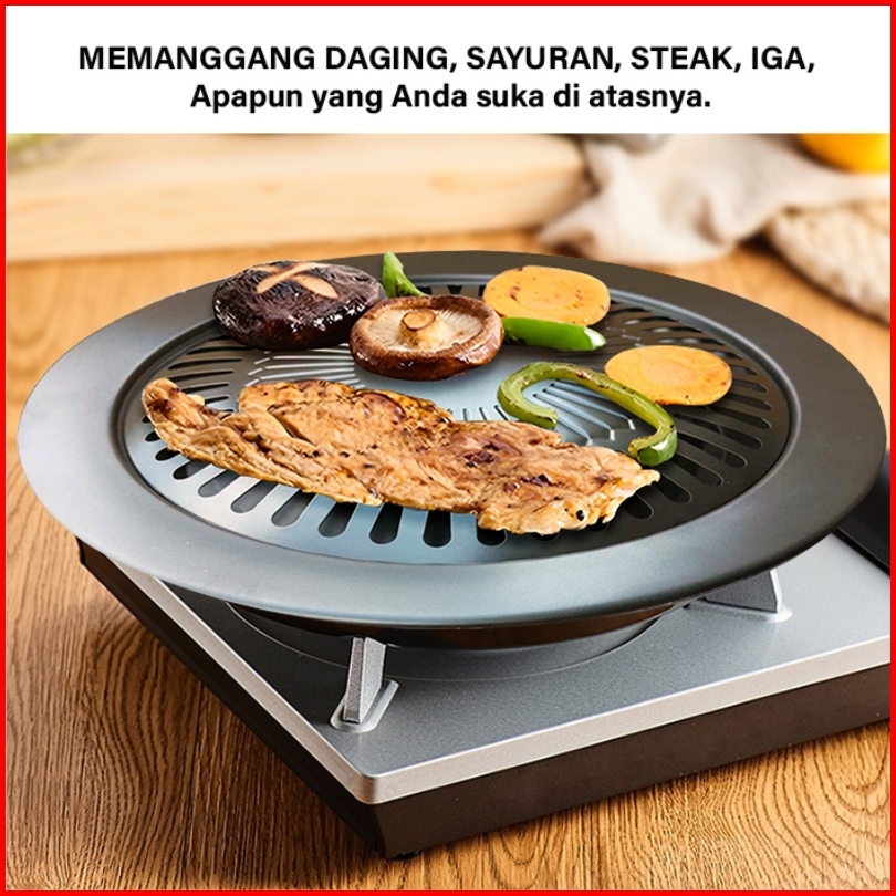 Grill Pan Panggangan Bulat Barberque Bbq Grill Plate Smokeles Kp1 Portable
