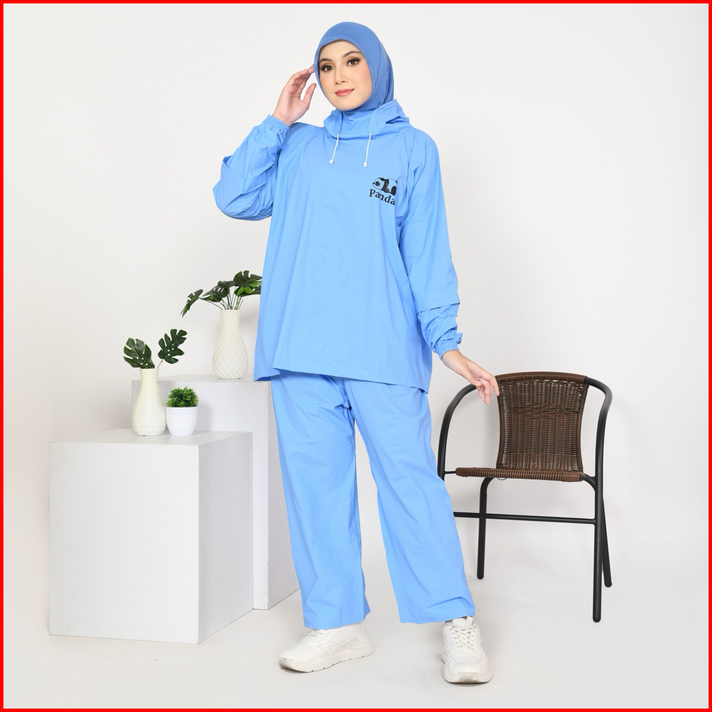 Panda Jas Hujan Terbaru Model Hoodie Setelan Pria Wanita Bahan Pvc Elastis Anti Rembes